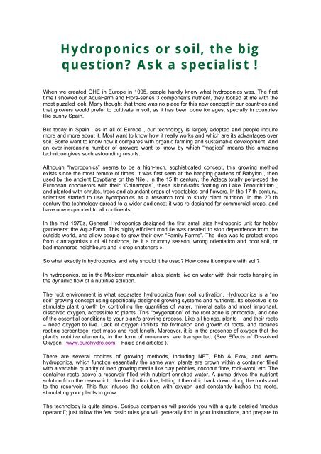 Hydroponics Or Soil The Big Question Ask A Specialist